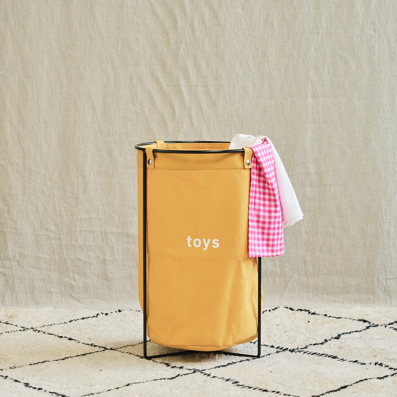 ランドリーバッグとしてはもちろん、子供のおもちゃ収納、ゴミ箱など、様々な用途でご使用いただけます。